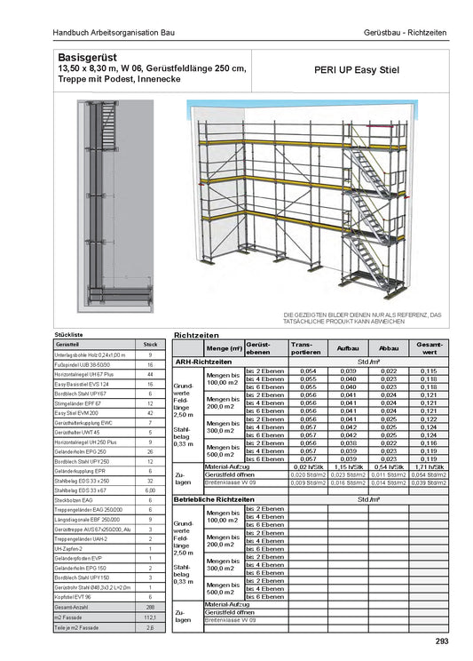 ARH-Tabelle Systemschalung Decken und Handbuch Arbeitsorganisation Bau Richtzeiten Deckenschalung
